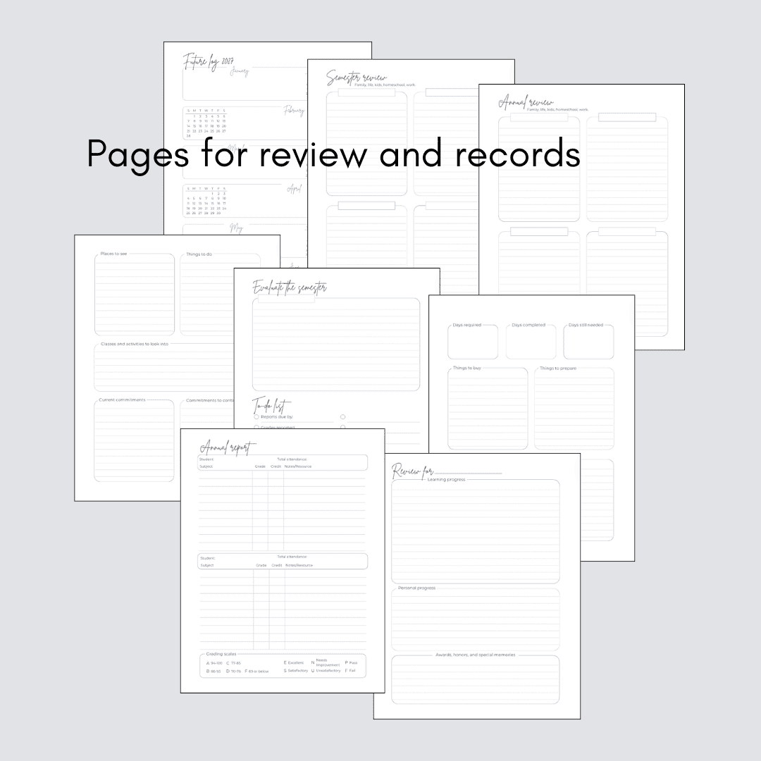 Chart your educational path with detailed curriculum planning, goal setting, tailored activity tracking, and flexible scheduling. Keep your bearings with extensive review pages—monthly, mid-year, and annual—that help you stay on track throughout the year. Experience the Footpath Homeschool Planner and make your educational adventure truly exceptional.