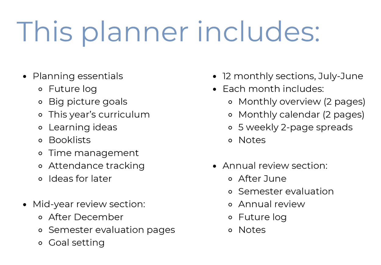 Does this planner include religious content? No, all versions of the Footpath Homeschool Planner are religious neutral.